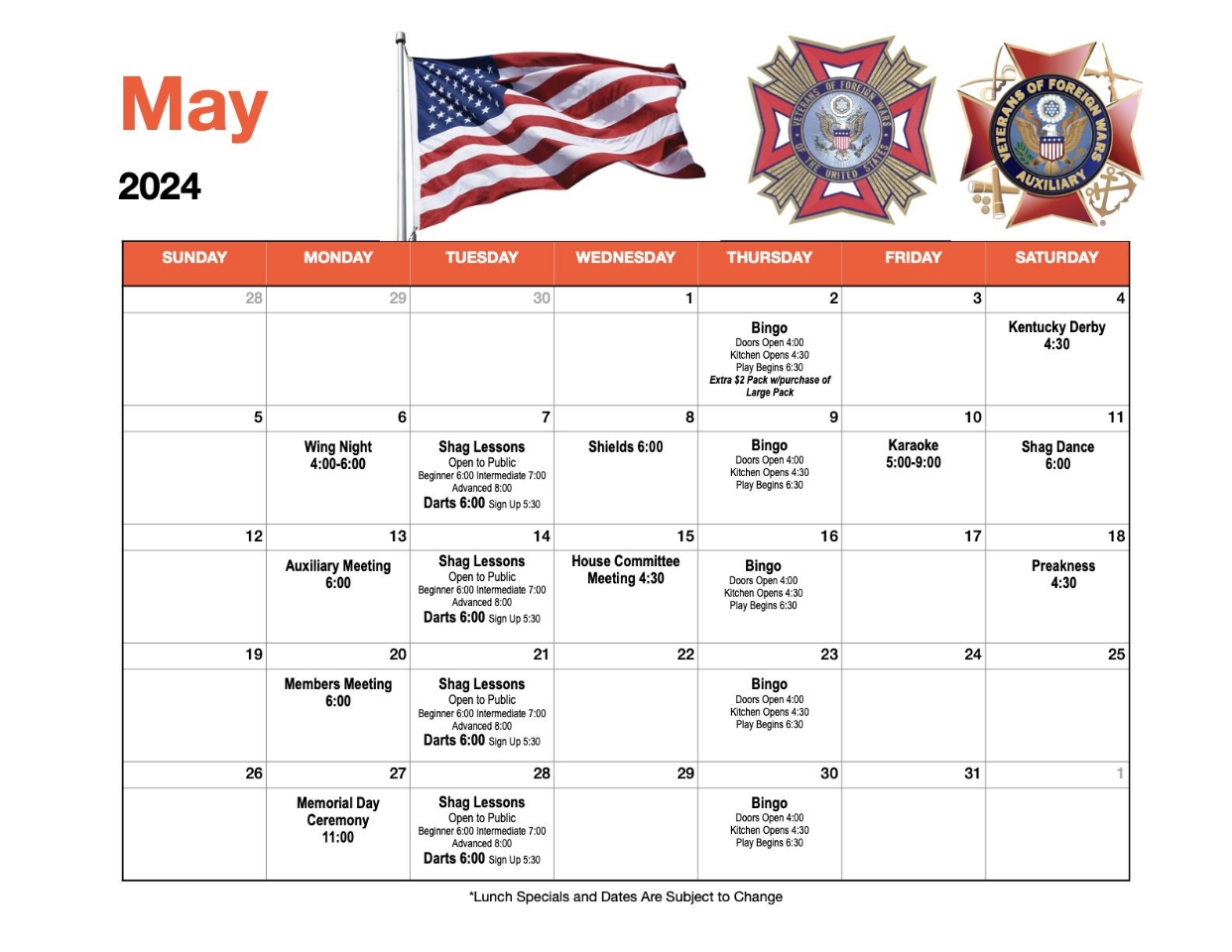 Vfw Post 2024 Monthly Calendar Mercy Starlin