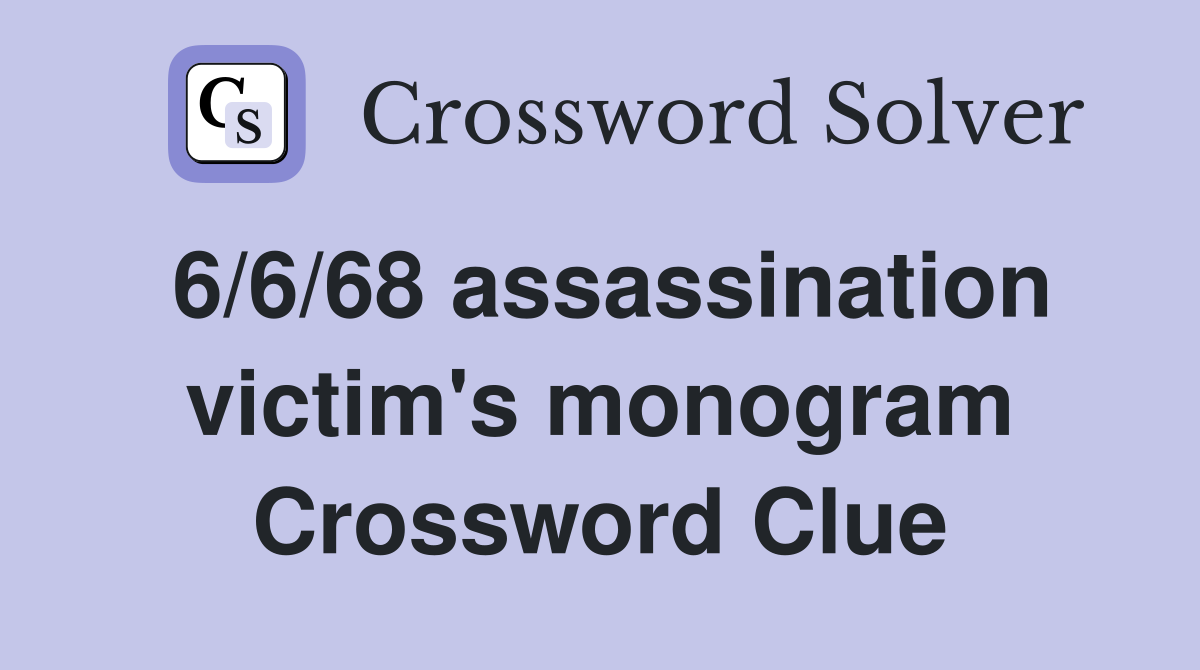 6/6/68 assassination victim s monogram Crossword Clue Answers