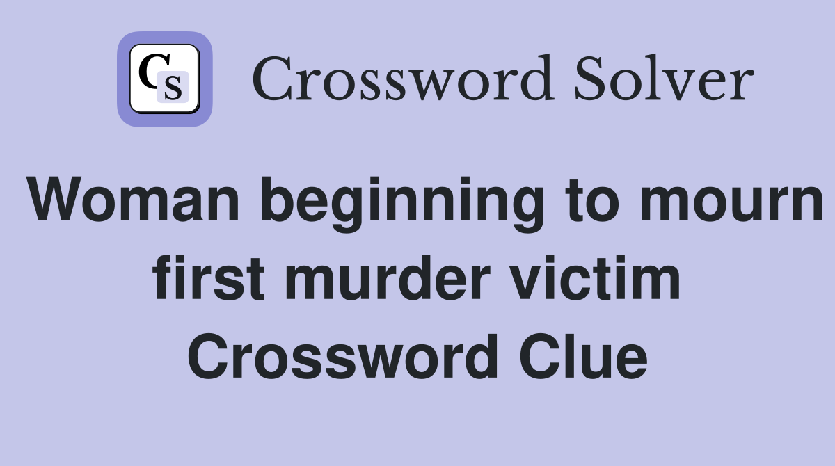 Woman beginning to mourn first murder victim Crossword Clue Answers