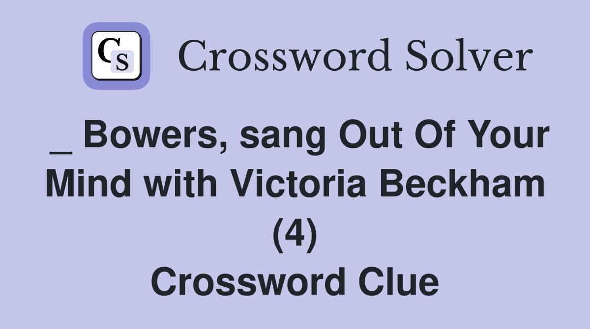Bowers sang Out Of Your Mind with Victoria Beckham (4) Crossword