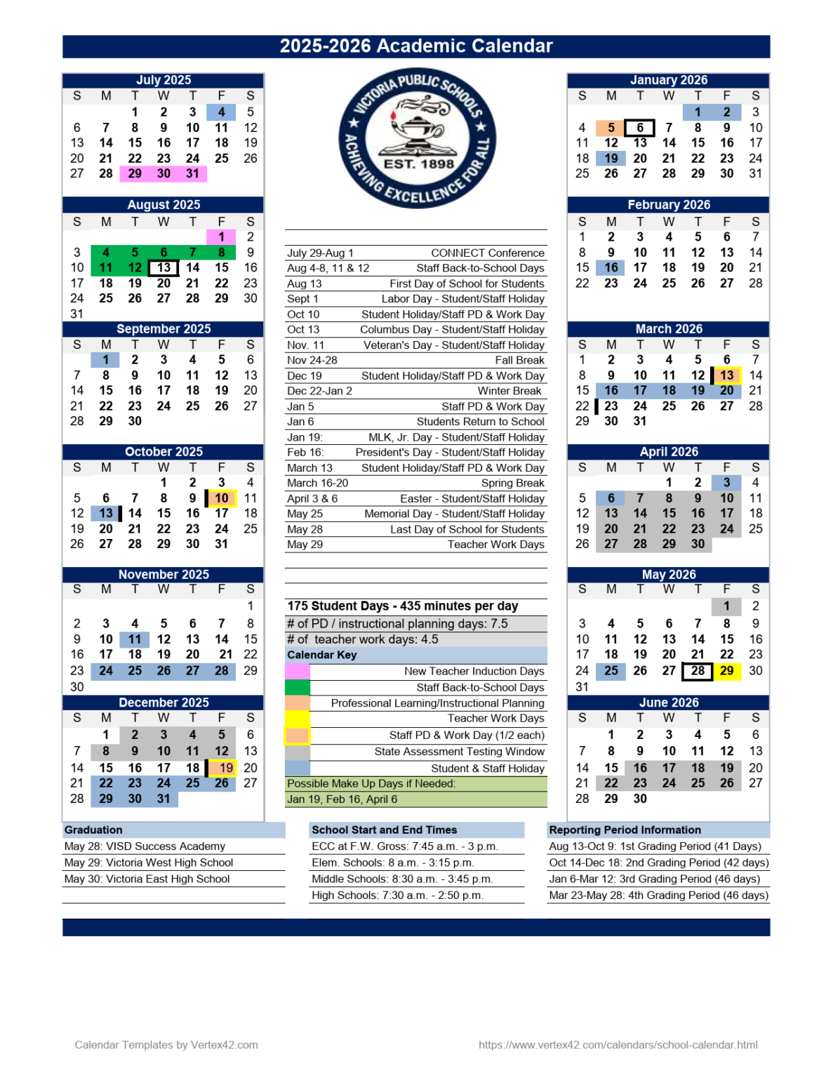 VICTORIA ISD BOARD OF TRUSTEES APPROVES 2025 26 ACADEMIC CALENDAR