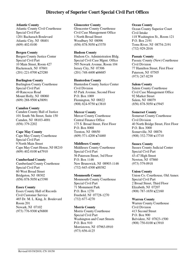 A Comprehensive Directory of New Jersey Superior Court Special Civil