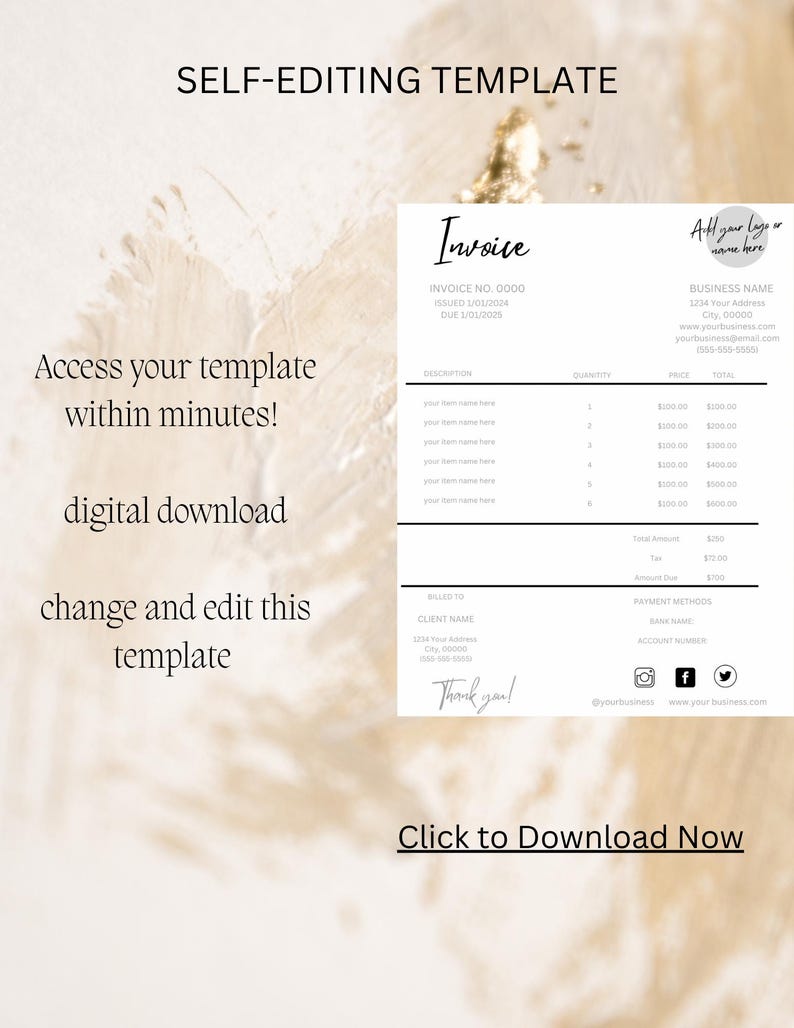 Minimalist Invoice Template Editable Invoice Printable Digital