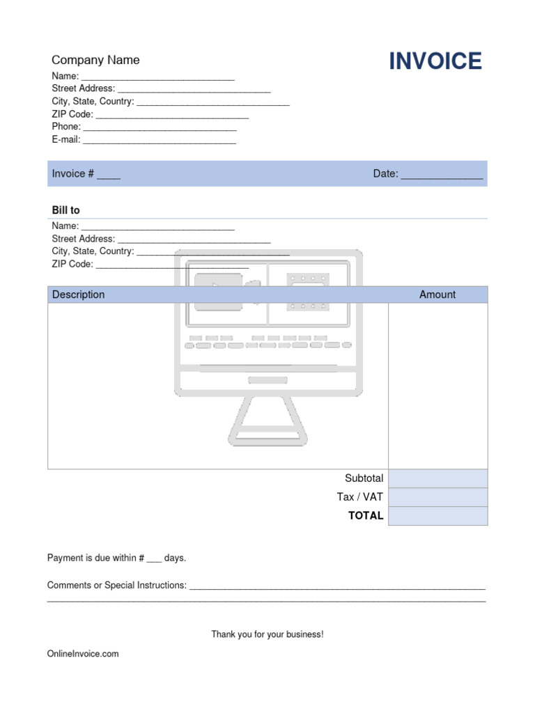 How To Make a Custom Invoice Template with Word PrintIt4Less