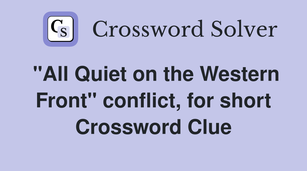 quot All Quiet on the Western Front quot conflict for short Crossword Clue