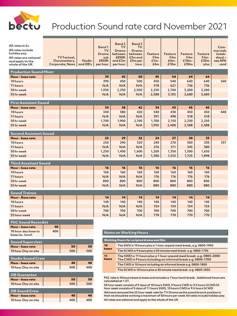 Bectu Production Sound Rates Nov 2021 Final PDF Working Time