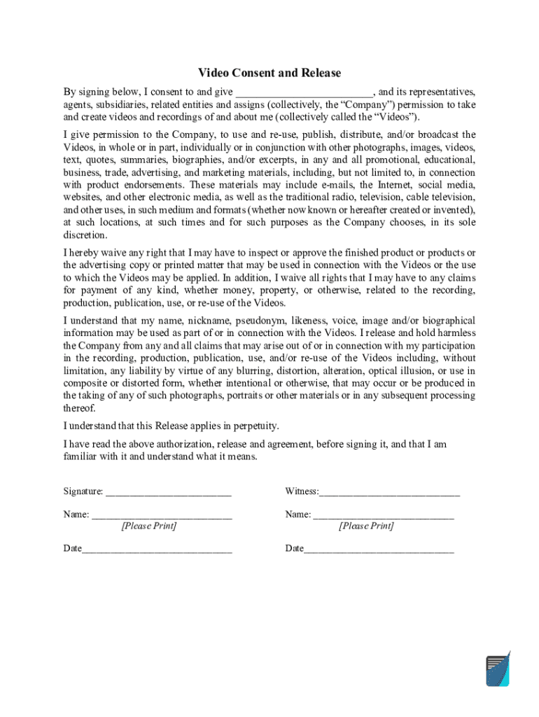 Video Release Form download free documents for PDF Word and Excel