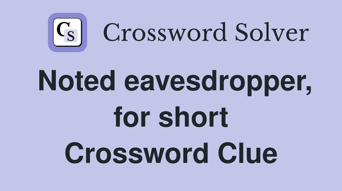 Noted eavesdropper for short Crossword Clue Answers Crossword Solver