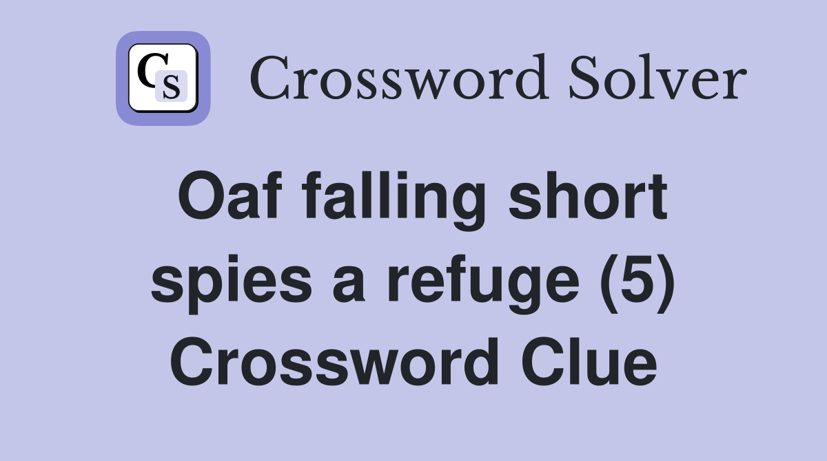 Oaf falling short spies a refuge (5) Crossword Clue Answers