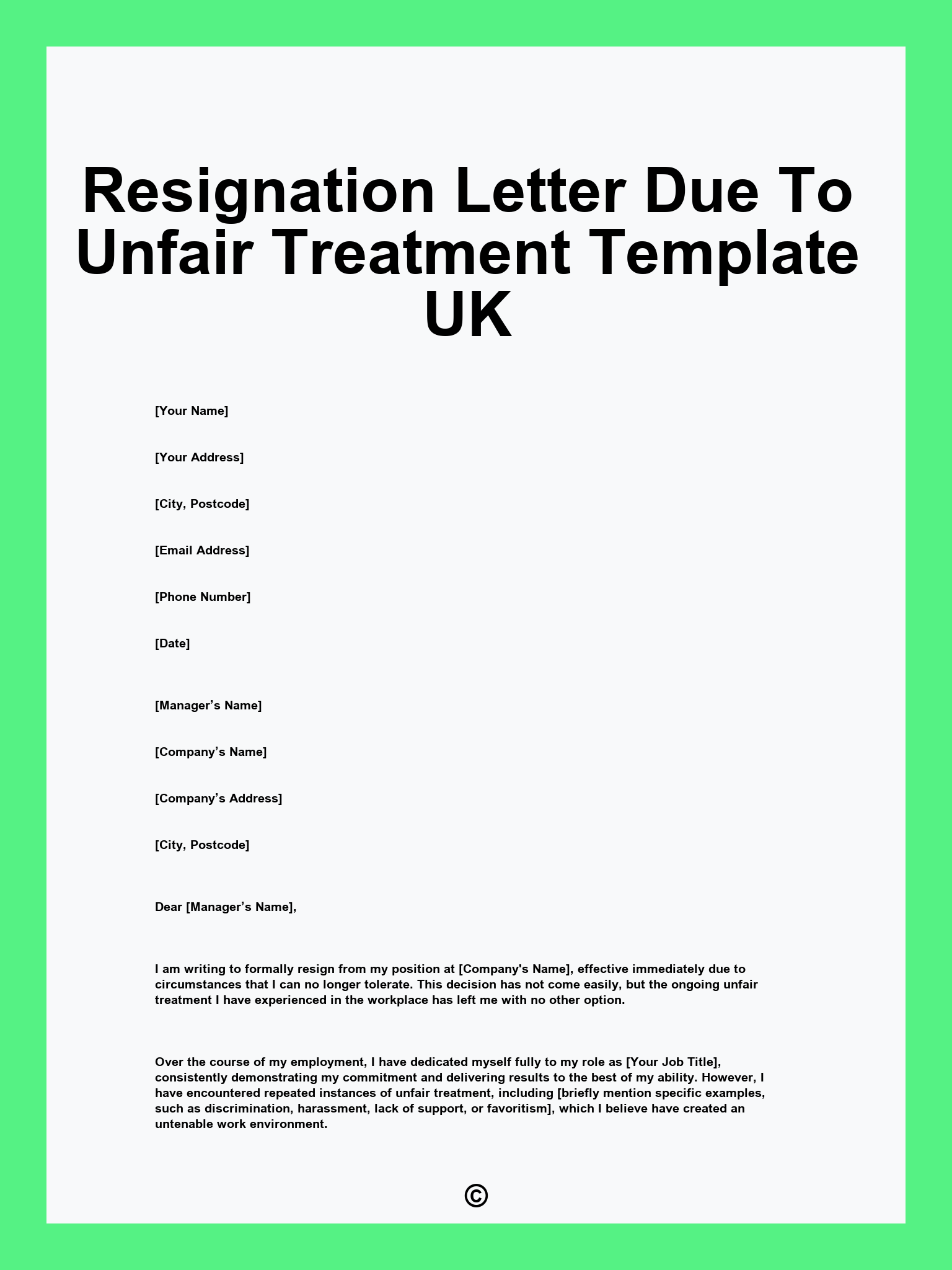 Resignation Letter Due To Unfair Treatment Template UK