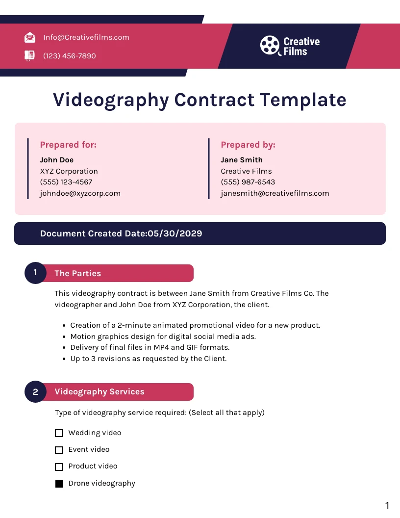 Videography Contract Template (FREE) Bonsai Bonsai
