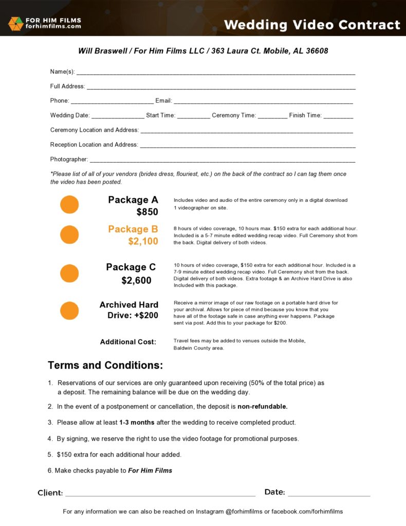 Wedding Videography Contract Template Free Printable Documents