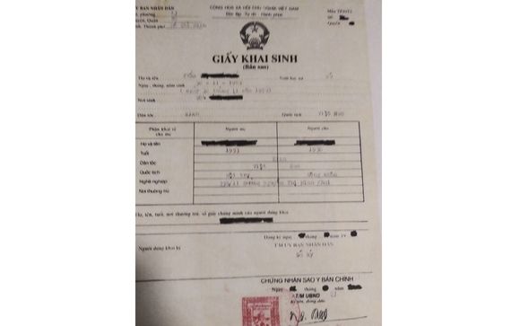 Authenticate Vietnamese birth certificate : VietNam