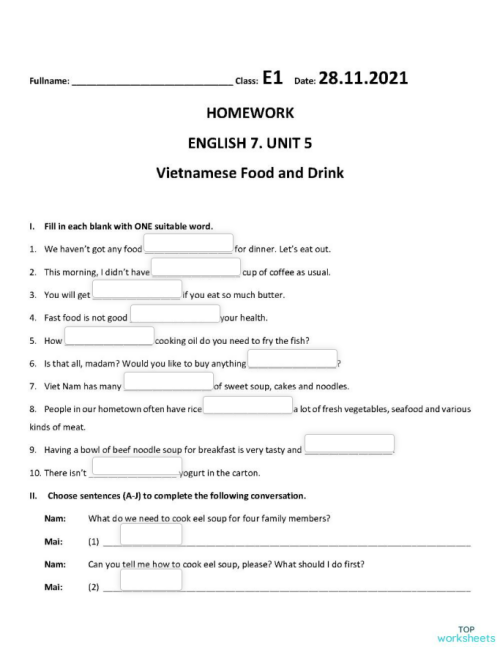 Interactive worksheets and online exercises in vietnam TopWorksheets