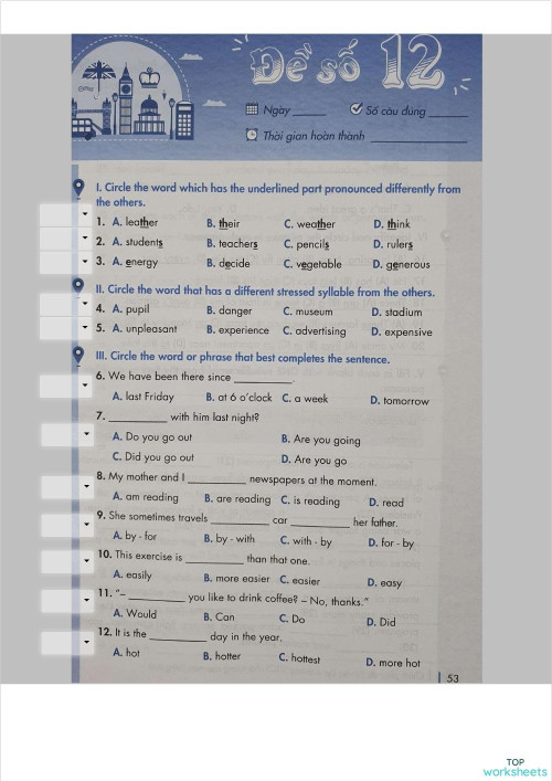 Interactive worksheets and online exercises in Vietnam TopWorksheets