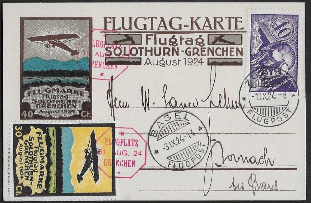 1924 Flugtag Karte Vignette Soloth /Grenchen ZH BS F7 ab 1 (Gebraucht