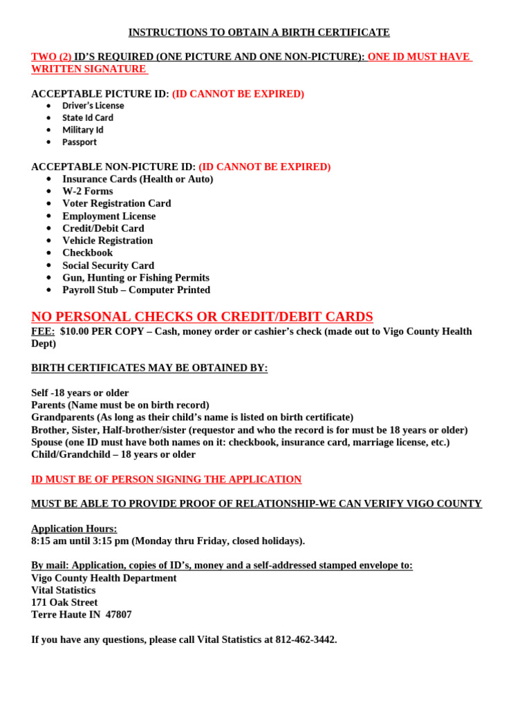 Vigo County Birth Certificate Form 2025 PDF Birth Certificate Cheque