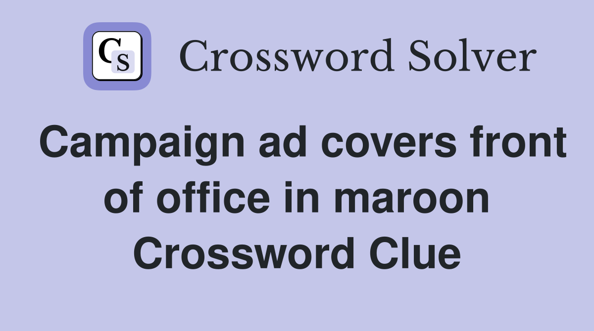 Campaign ad covers front of office in maroon Crossword Clue Answers