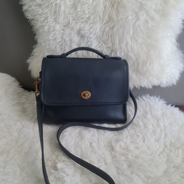 Vintage Coach Court Bag Top Handle Crossbody 9870 RARE Dark Navy
