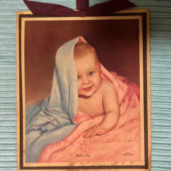1940s Vintage German ADVENT CALENDAR Glittery Angels Scene by Artist