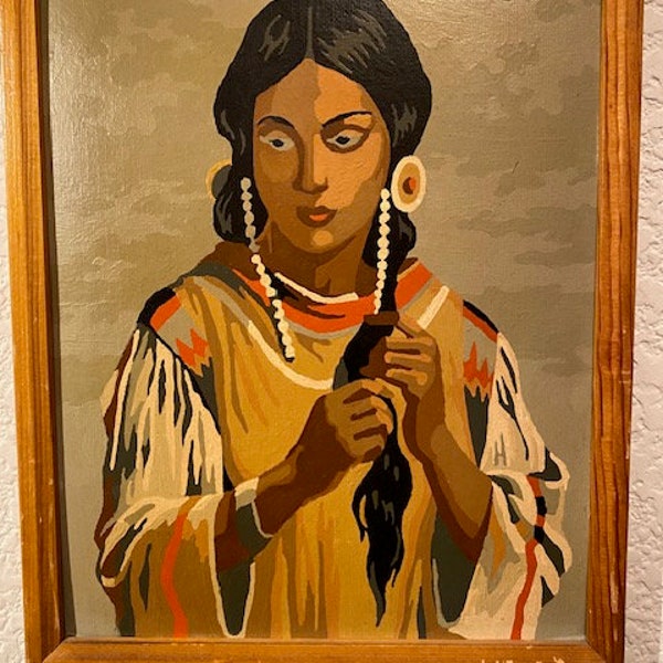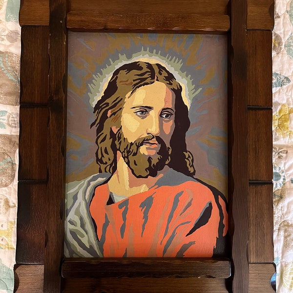 Vintage Paint By Number Jesus Portrait 60s 70s MCM Folk Primative