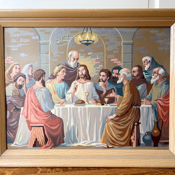 Vintage Paint by Number Last Supper Jesus Apostles Religious Framed 23