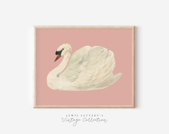 Swan Art Print Vintage PRINTABLE Wall Art Pastel Farmhouse Nursery