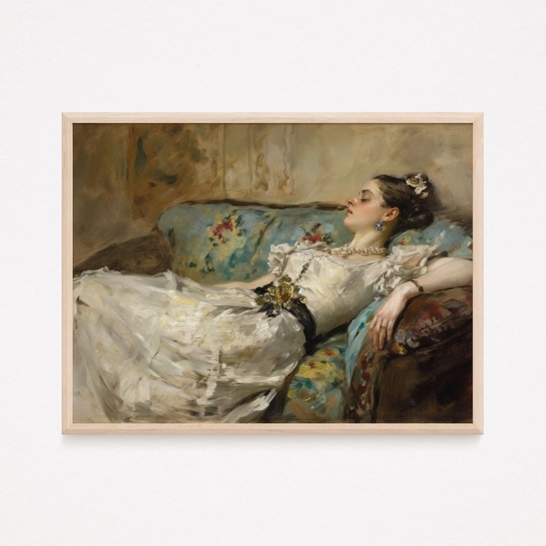Victorian Woman on Couch Painting Download Vintage Printable Wall Art