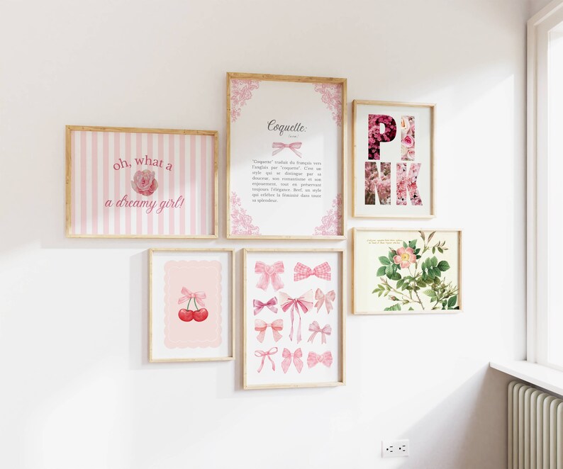 Coquette Gallery Wall Art for Girl #39 s Room Set of 6 Vintage Printable