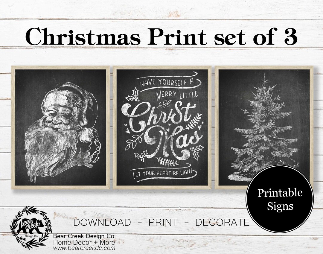 Christmas Prints Set of 3 Vintage Santa Printable Vintage Christmas