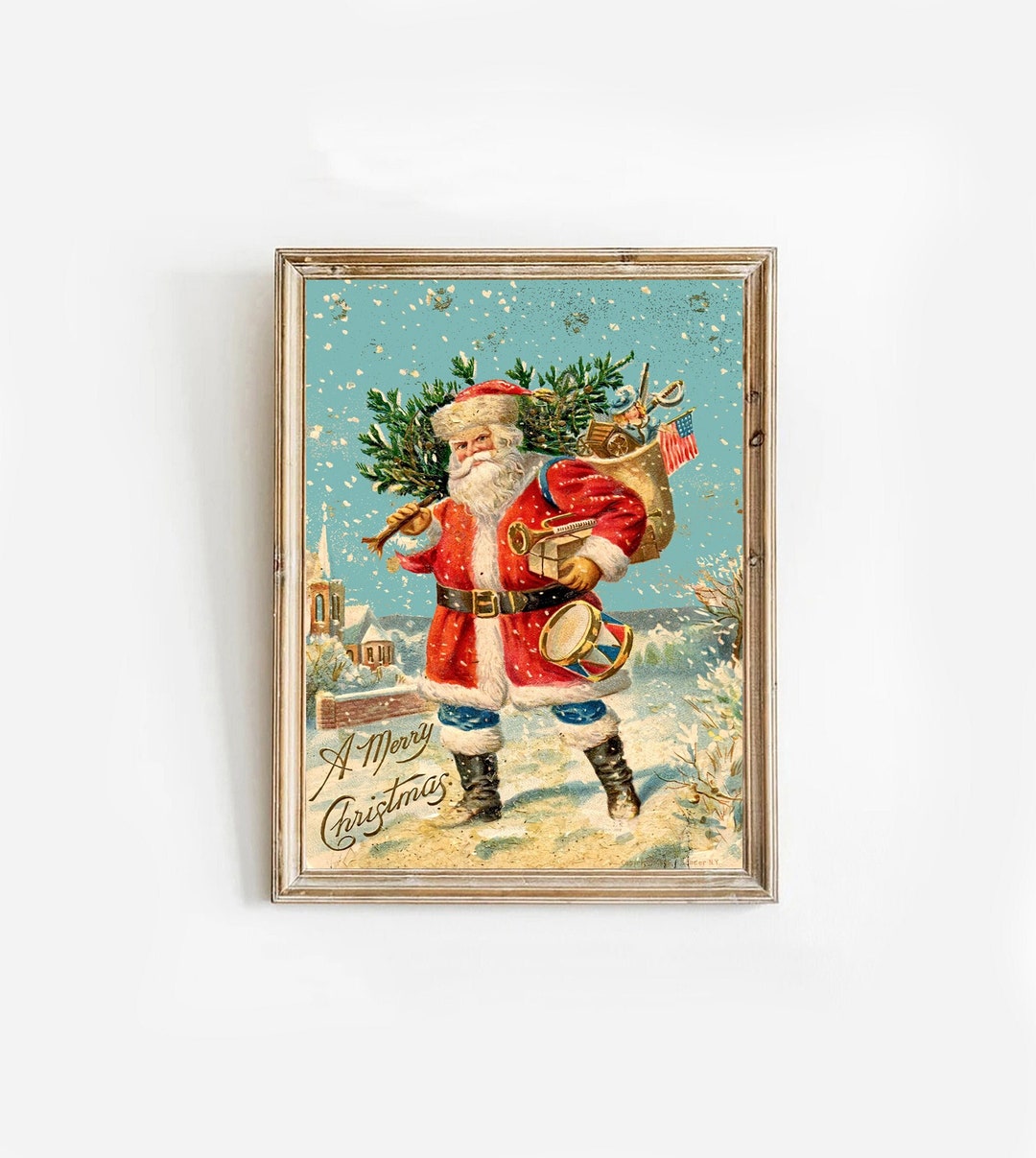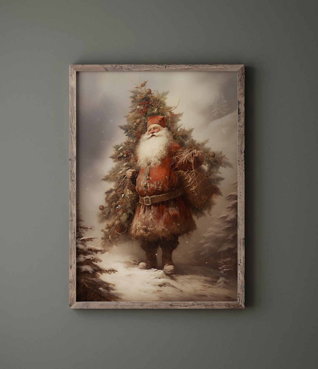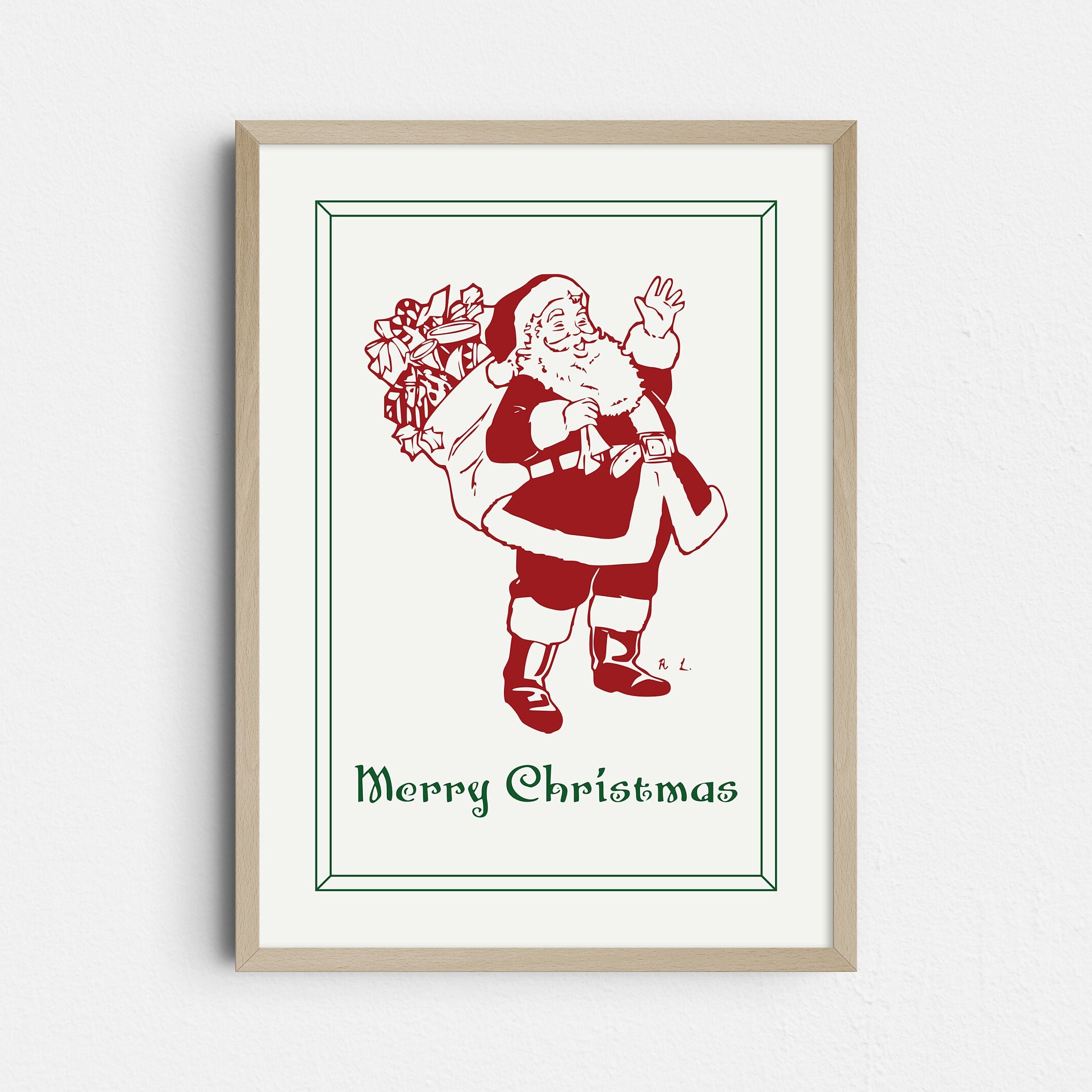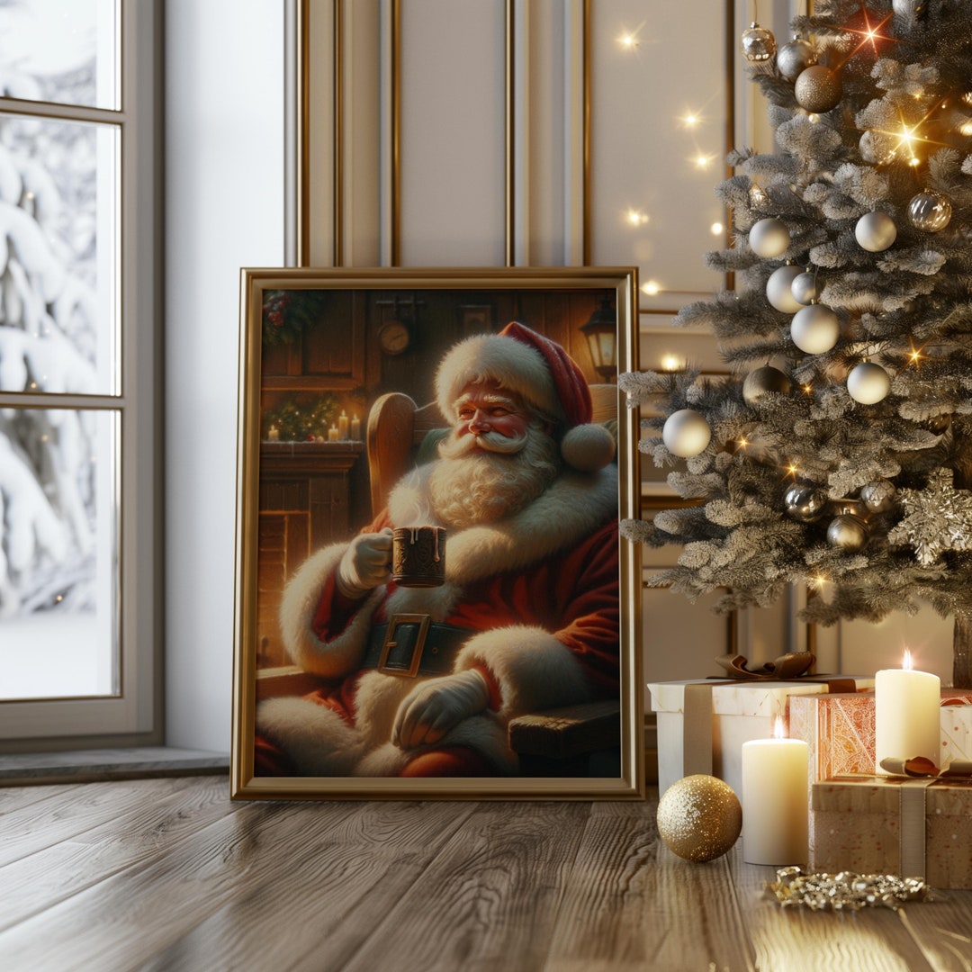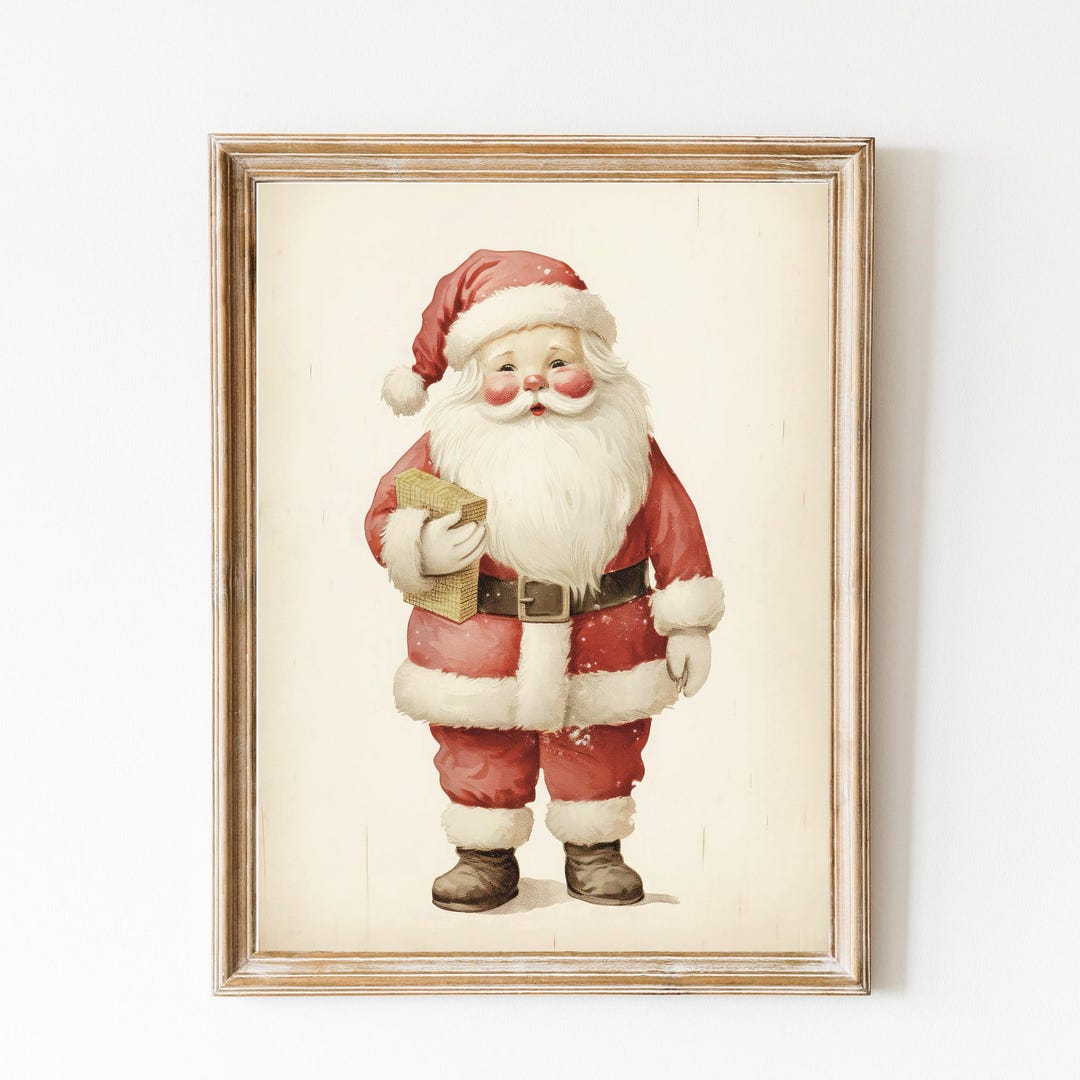 Vintage Santa Printable Wall Art Christmas Print Bedroom Living Room