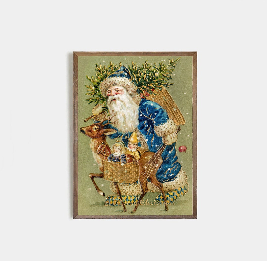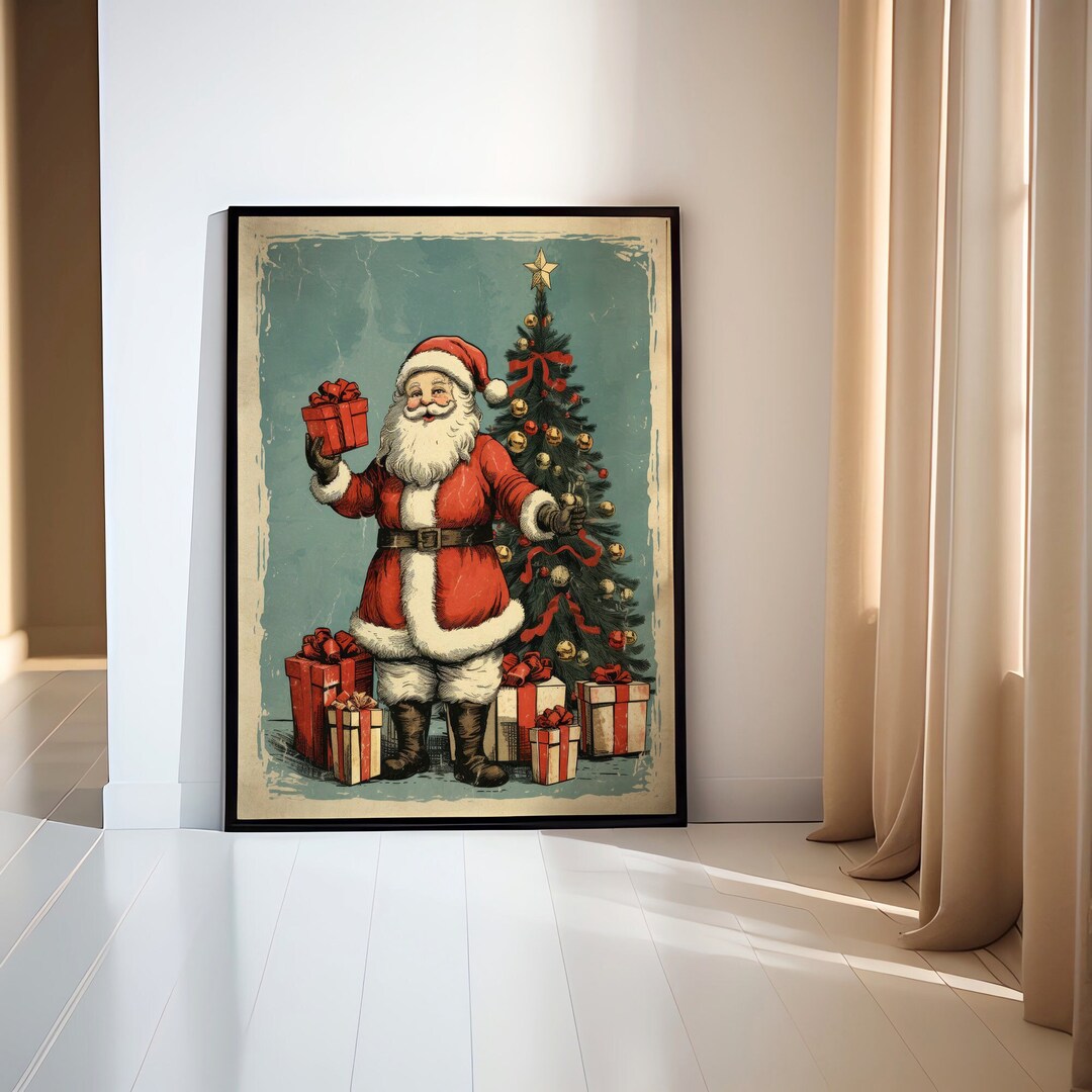 Retro Santa Claus Print Vintage Wall Art Print Frame Etsy