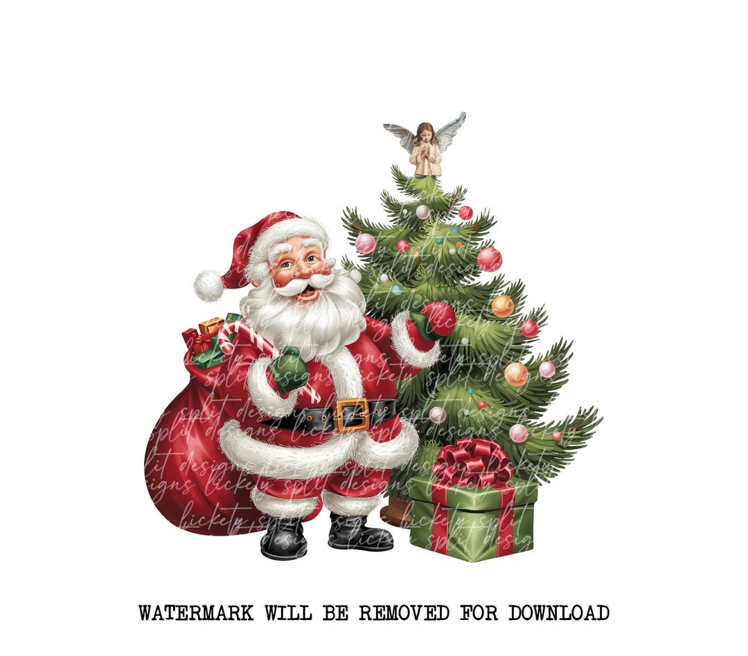 Festive Christmas Santa Claus Christmas Tree Digital Download Vintage