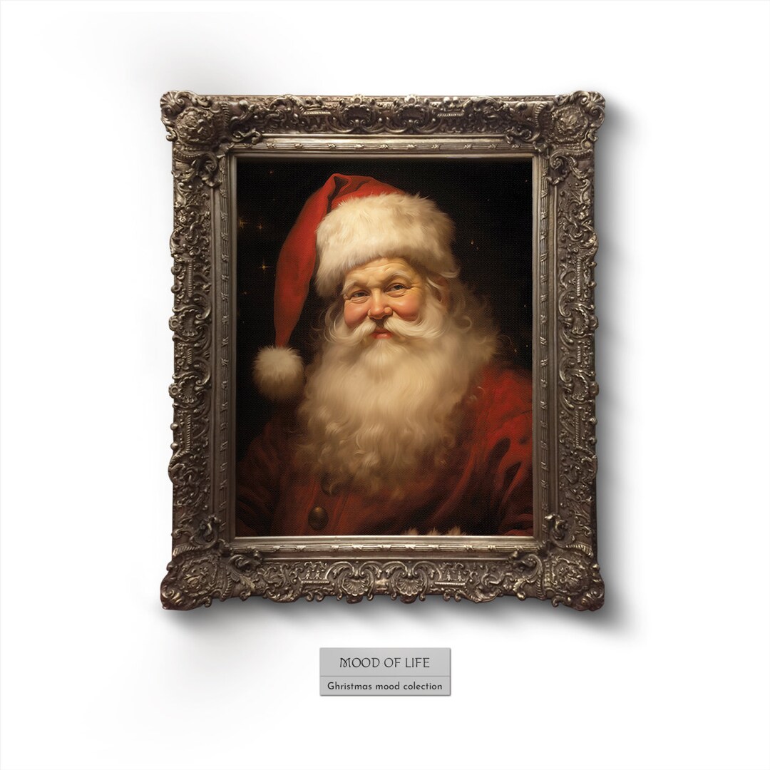 Vintage Santas Portrait Printable Oil Painting Christmas Wall Decor