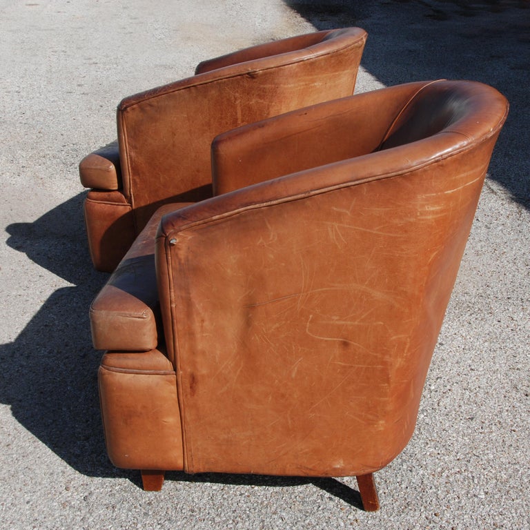 Set of French Art Deco Brown Leather Club Chairs For Sale at 1stDibs