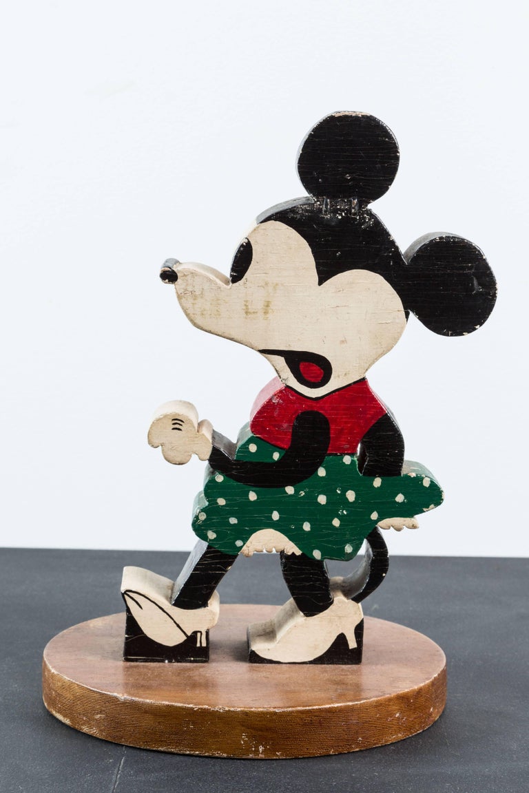 Vintage Wood Caved Folk Art Mickey Mouse and Minnie Mouse at 1stDibs