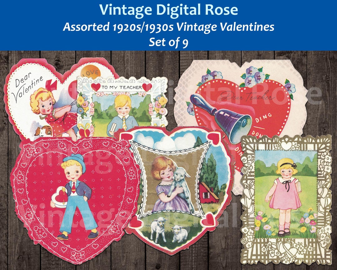 Vintage Printable Valentines Valentine Greeting Cards 1920s 1930s Set