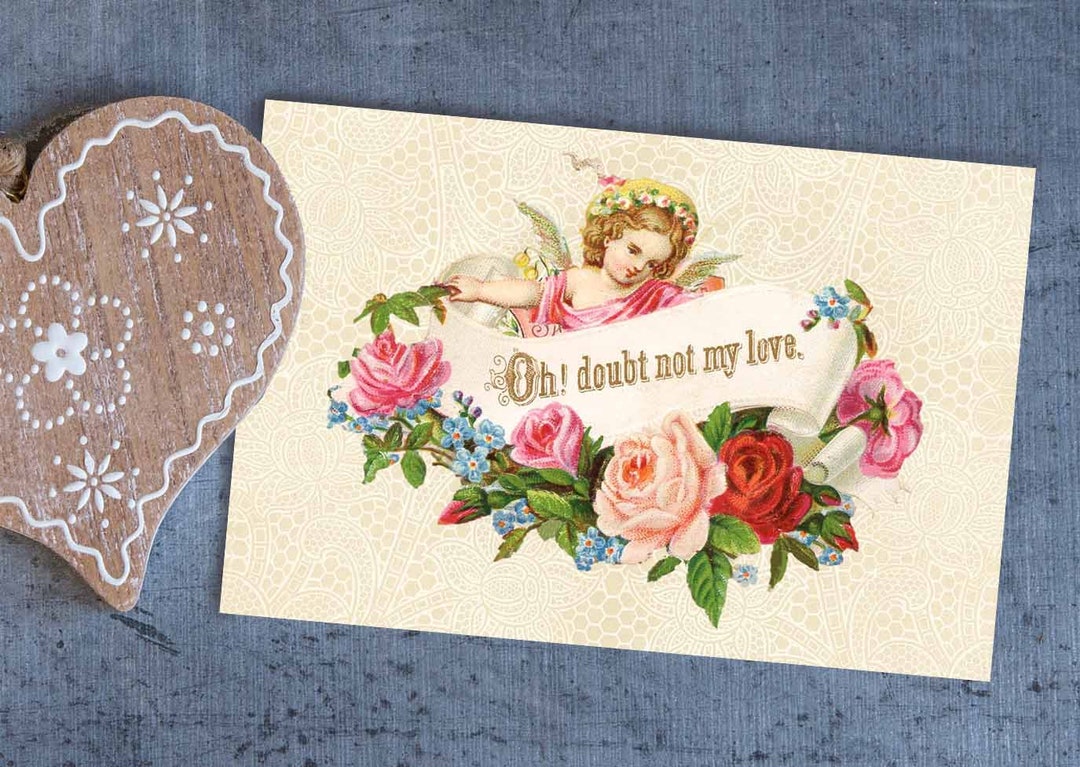 Printable Vintage Valentine Card Antique Victorian Digital Etsy
