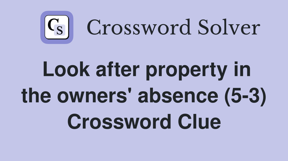 Look after property in the owners #39 absence (5 3) Crossword Clue