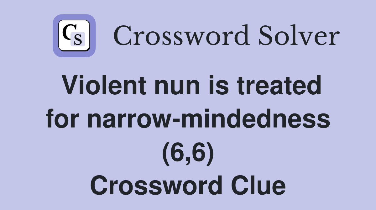 Violent nun is treated for narrow mindedness (6 6) Crossword Clue