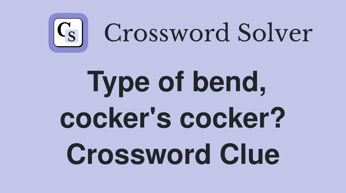 Type of bend cocker #39 s cocker? Crossword Clue Answers Crossword Solver