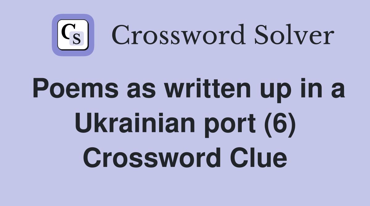 Poems as written up in a Ukrainian port (6) Crossword Clue Answers