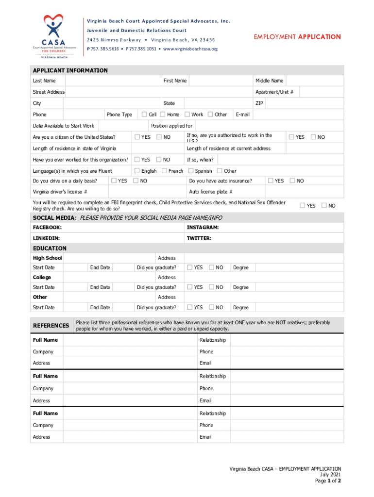 Fillable Online Virginia Beach Court Appointed Special Advocate Program