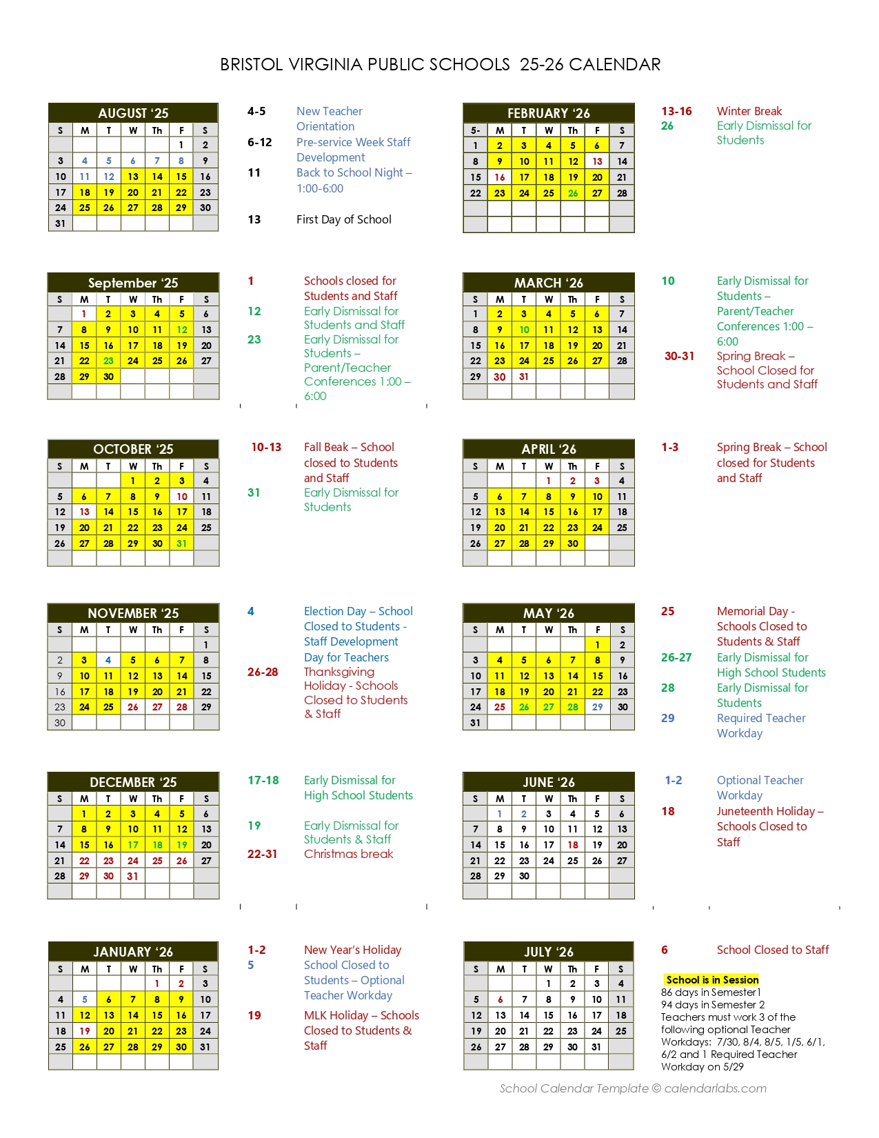 Bristol Virginia Public Schools Calendar 2025 2026