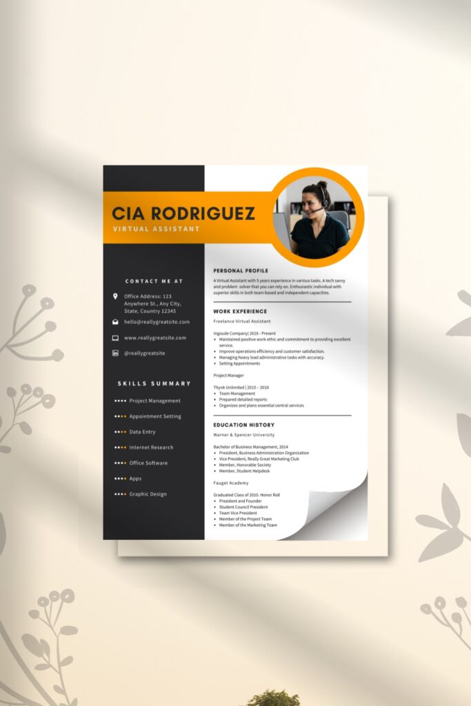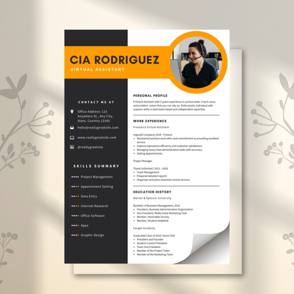 Orange and Black Virtual Assistant Resume Template MasterBundles