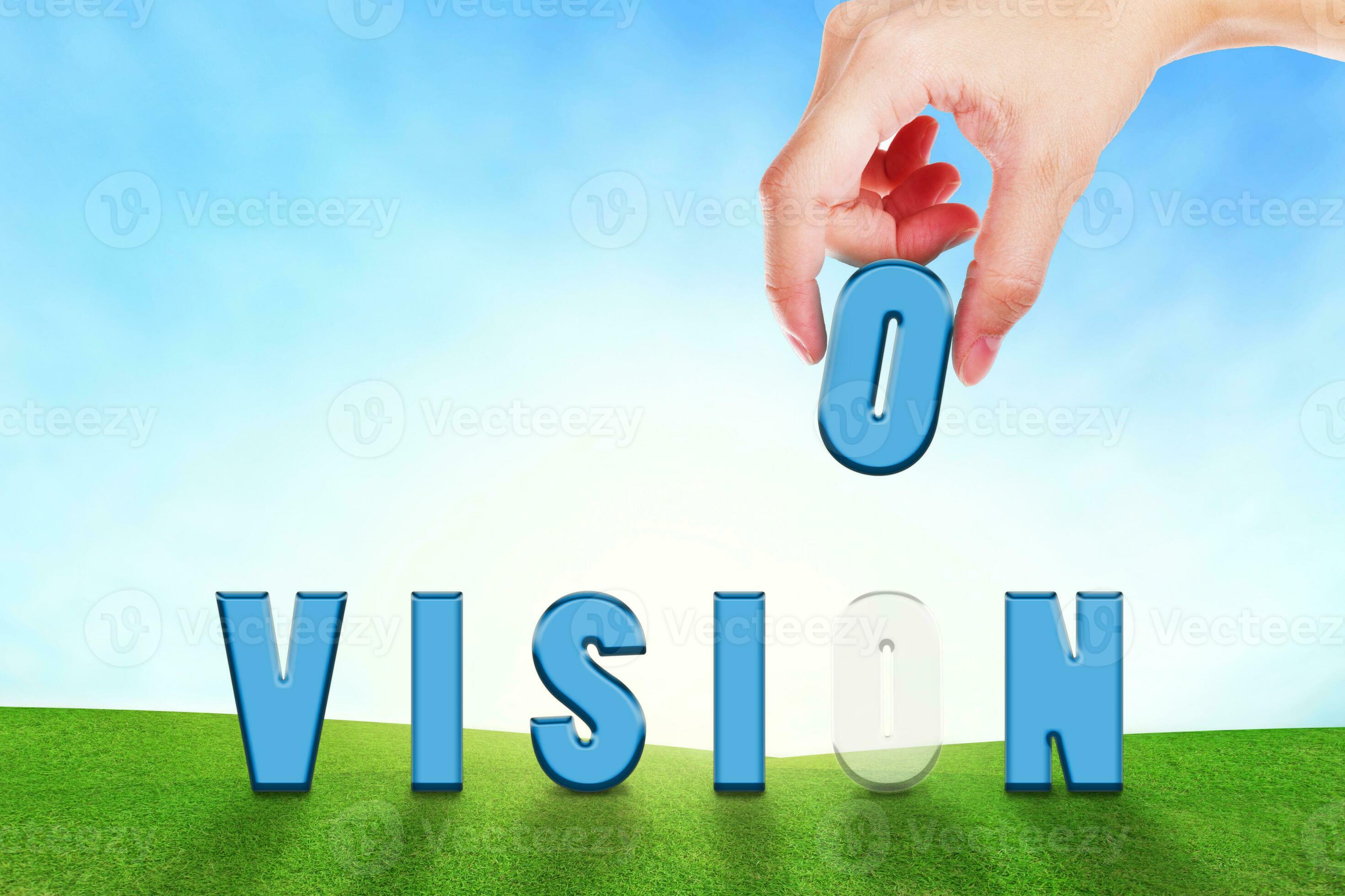 Female hand filling text vision on grassland 27290148 Stock Photo at