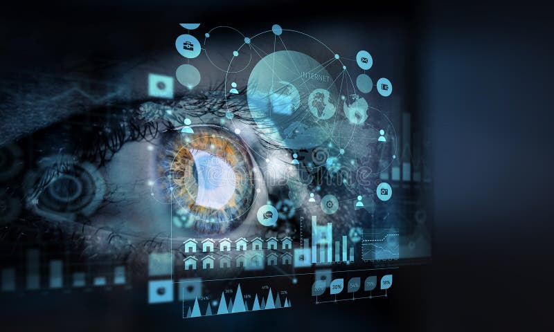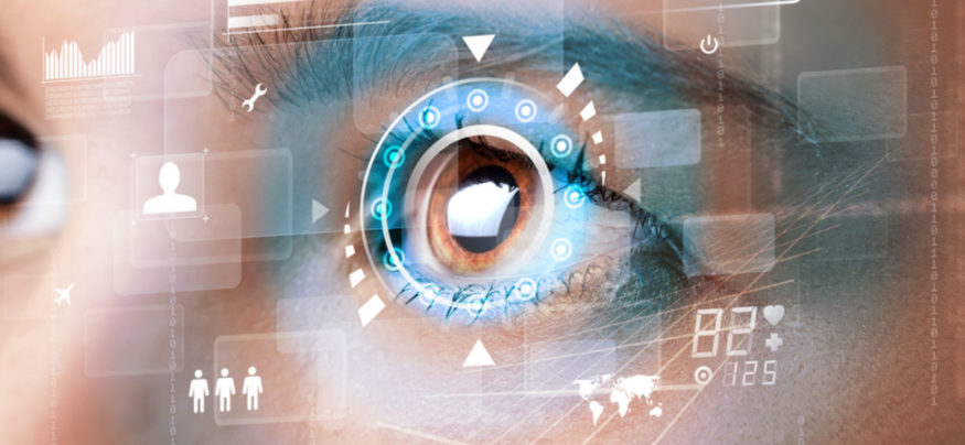 High tech eye with digital interface symbolizing advancements in vision