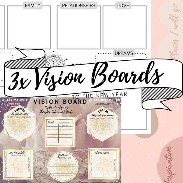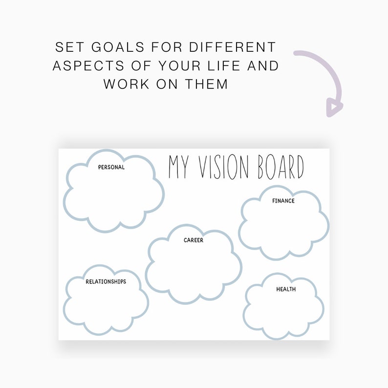 Vision Board Printable and Worksheet Instant Download With Multiple