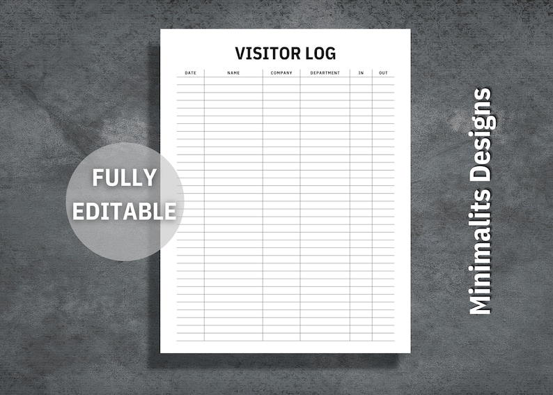 Visitor Log Visitor Logbook Visitor Tracker Form Instant Etsy