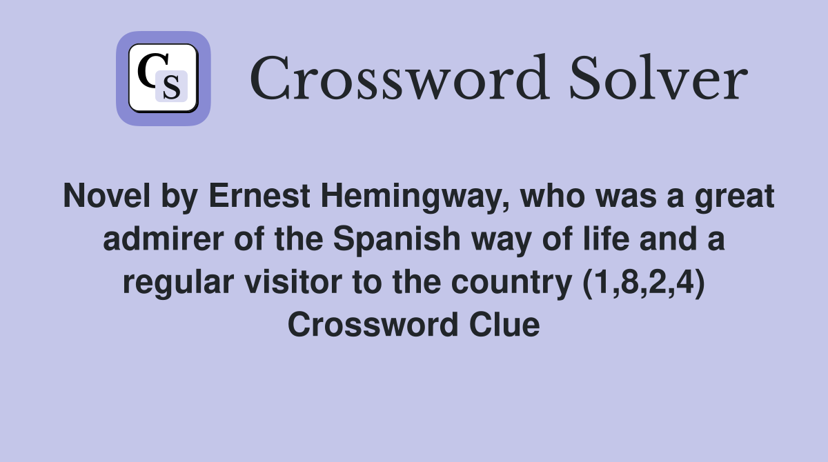 Novel by Ernest Hemingway who was a great admirer of the Spanish way